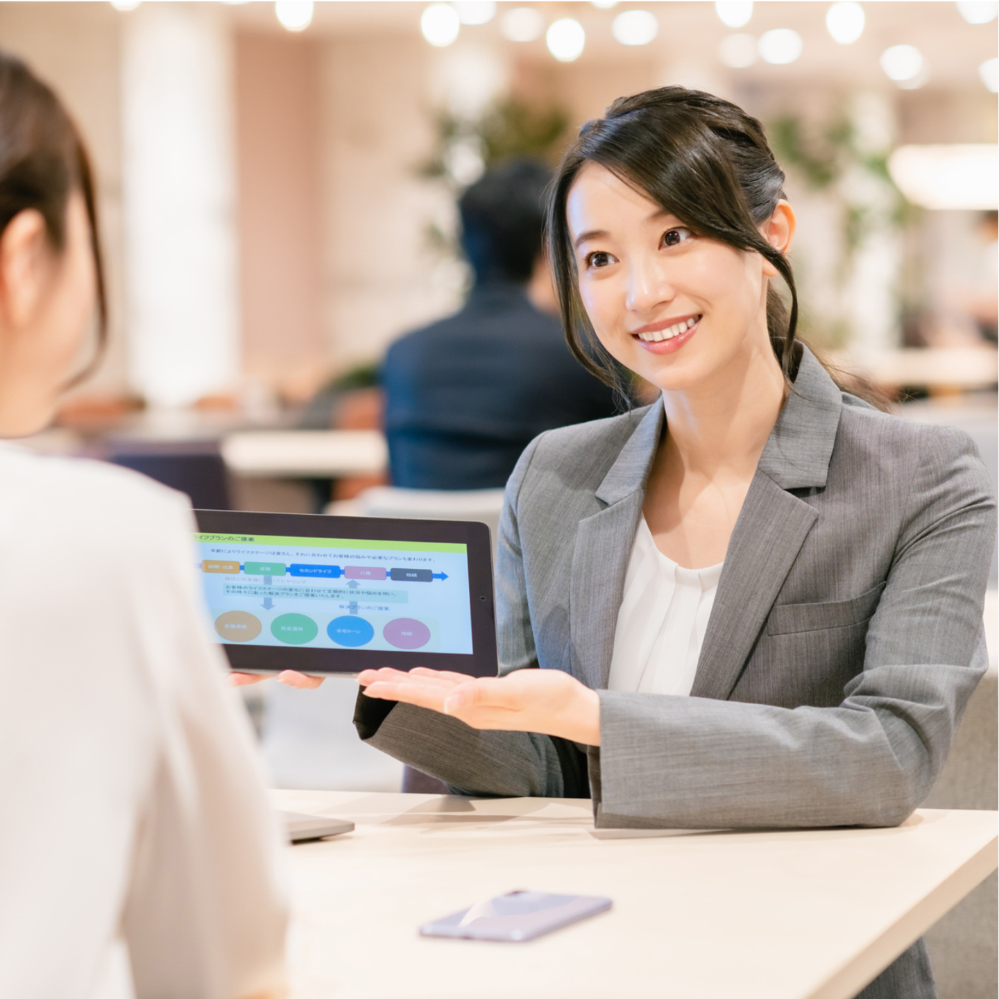 カフェ・ファミレスなどでの面談直接資料やデータを見ながらわかりやすくご説明いたします。